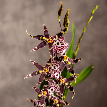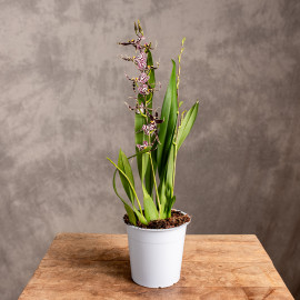 Brassica znana również jako "storczyk pająk" ze względu na charakterystyczny, wydłużony kształt płatków zachwyca delikatnymi, kwiatami w odcieniach kremu, fioletu i brązu. Ich egzotyczny wygląd i subtelny, przyjemny zapach sprawiają, że to wyjątkowa propozycja dla miłośników storczyków szukających czegoś niebanalnego.