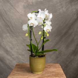 Phalenopsis to najpopularniejszy rodzaj storczyka doniczkowego, którą obecnie możemy znaleźć w większości domów. Lubi półcień, ciepło i wysoką wilgotność powietrza. Liście, które są szerokie i wydłużone gromadzą zapasy wody, z kolei korzenie pobierają wodę z powietrza. Kwiaty tego storczyka w środowisku naturalnym osiągają średnicę 12 cm oraz są barwy białej.