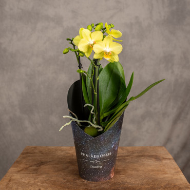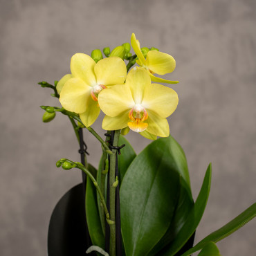 Storczyk Phalaenopsis Multiflora ‘Anthura Alben’ to niezwykle wdzięczna odmiana storczyka, która urzeka subtelną elegancją i obfitym kwitnieniem. Na jednym pędzie pojawia się wiele drobnych kwiatów w kolorze cytrynowym, tworzących efekt delikatnego, kwitnącego bukietu.