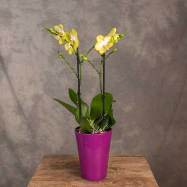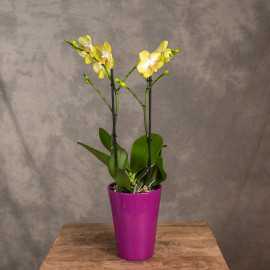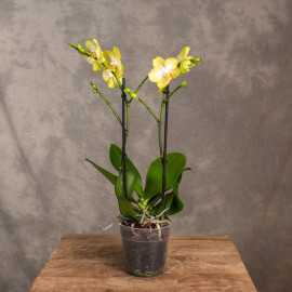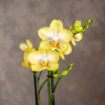 Phalaenopsis 'Honeybee' wyróżnia się swoimi delikatnymi, żółtymi kwiatami z subtelnymi czerwonymi plamkami. Kwiaty są średniej wielkości i utrzymują się na roślinie przez długi czas.