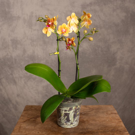 Storczyk Multiflora o niezwykle efektowna odmiana falenopsisa, która zachwyca obfitością kwiatów i ich barwnym wybarwieniem. Na jednej roślinie pojawia się wiele pędów obsypanych dziesiątkami drobniejszych, ale trwałych kwiatów.
