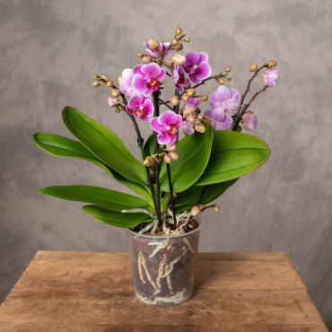 Storczyk Multiflora Pink to zachwycająca odmiana storczyka, która wyróżnia się obfitym kwitnieniem i subtelnym, różowym odcieniem kwiatów. Dzięki swoim licznym, drobnym kwiatom osadzonym na smukłych łodygach, tworzy spektakularny efekt, który doskonale ozdobi każde wnętrze.