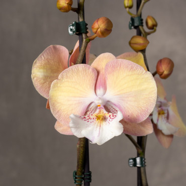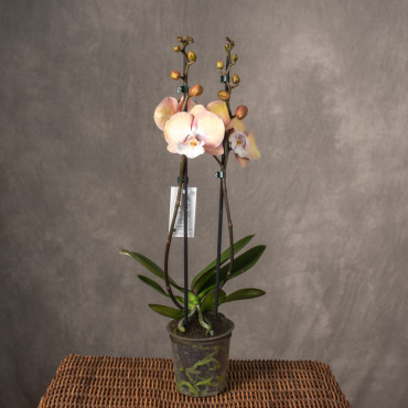 Ojczyzną Phalaenopsisa są Indie, Malezja, Filipiny i północna Australia. Rośliny te żyją zazwyczaj jako epifity na tropikalnych drzewach. Na świecie jest 28 tysięcy gatunków storczyków, wybraliśmy spośród nich okazy wysokiej jakości z dużą ilością pięknych kwiatów i zdrowych pąków aby zapewnić długi czas kwitnienia. Niezwykle ozdobna odmiana popularnego storczyka, która wyróżnia się delikatnymi odcieniami kwatów.