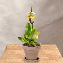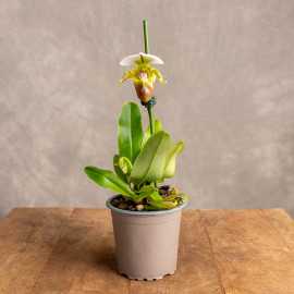 Pafiopedilum, pantofelek lub sabotek, tak nazywany jest ten wyjątkowy storczyk. A to za sprawą nietypowych kwiatów, które wyglądają jak maleńki bucik. Pantofelek na pewno spodoba się wszystkim uprawiającym storczyki. Sprawdzi się szczególnie we wnętrzach, w których liczy się wyjątkowość oraz detale. Rekomendujemy go doświadczonym miłośnikom storczyków.