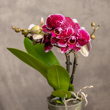 Phalaenopsis ‘Spirit Red’ to wyjątkowo elegancki storczyk o intensywnie czerwonych kwiatach, które emanują energią i klasycznym urokiem. Jego kwiaty są duże, symetryczne i aksamitne w wyrazie, a ich głęboki, nasycony kolor pięknie kontrastuje z ciemnozielonymi, błyszczącymi liśćmi. W pełnym rozkwicie tworzy efektowną kaskadę kwiatów, które utrzymują się na pędach nawet przez kilka miesięcy.