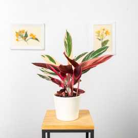 Stromante krwista 'Triostar' ( Stromanthe sanguinea 'Triostar' ) to roślina, którą polecamy osobom kochającym wyzwania. Jej posiadanie wiąże się z zapewnieniem roślinie przede wszystkim odpowiedniej temperatury oraz wilgotności rodem z lasów tropikalnych z Ameryki Południowej. To właśnie przez te wymogi kalatea jest rośliną rzadko spotykaną w domach, a jej obecność świadczy o wiedzy i umiejętnościach właściciela. Kalatea charakteryzuje się przepięknymi liśćmi, zróżnicowanymi pod względem gatunku, na których dumnie prezentują się ciekawe wzory. Uprawiające ją osoby mogą zaobserwować przepiękny rytuał –wieczorem roślina zasypia, ustawiając blaszki w pionie.