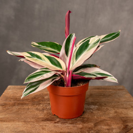Stromante krwista 'Triostar' ( Stromanthe sanguinea 'Triostar' ) to roślina, którą polecamy osobom kochającym wyzwania. Jej posiadanie wiąże się z zapewnieniem roślinie przede wszystkim odpowiedniej temperatury oraz wilgotności rodem z lasów tropikalnych z Ameryki Południowej. To właśnie przez te wymogi kalatea jest rośliną rzadko spotykaną w domach, a jej obecność świadczy o wiedzy i umiejętnościach właściciela. Kalatea charakteryzuje się przepięknymi liśćmi, zróżnicowanymi pod względem gatunku, na których dumnie prezentują się ciekawe wzory. Uprawiające ją osoby mogą zaobserwować przepiękny rytuał –wieczorem roślina zasypia, ustawiając blaszki w pionie.