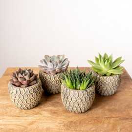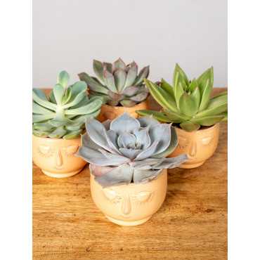 MIX sukulentów w ozdobnej, ceramicznej osłonce. Mogą być świetnym prezentem lub uroczym dodatkiem do dziecięcego pokoju. Sukulent jest rośliną łatwą w uprawie, nie straszny jej niedostatek wody i gorące słońce. Występuje w kilku odmianach.