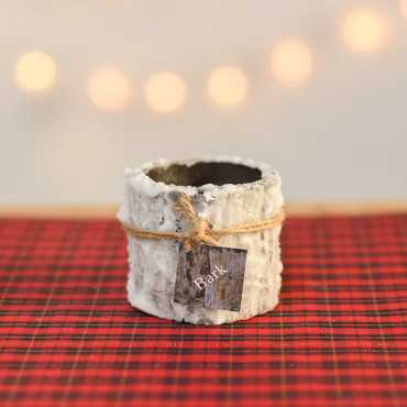 Ozdobna świeca w kształcie ośnieżonego pnia.