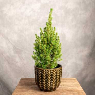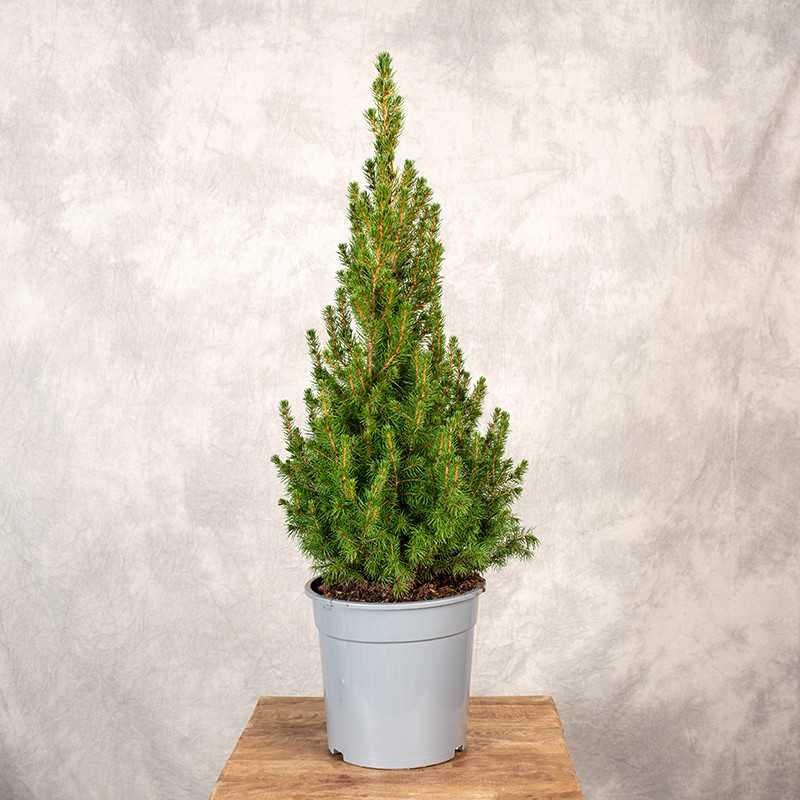 Idealna roślina jako mała mała wersja świątecznej choinki. Jedna z najpopularniejszych odmian świerka białego.