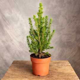 Idealna roślina jako mała mała wersja świątecznej choinki. Jedna z najpopularniejszych odmian świerka białego.