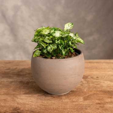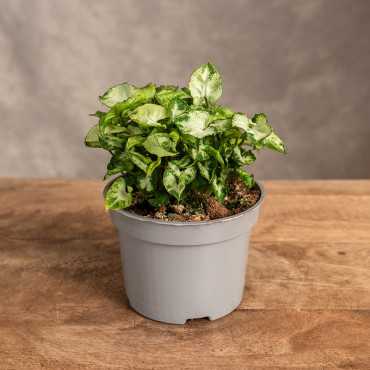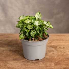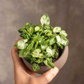 Syngonium 'Moonshine Dwarf Lush' to urocza i kompaktowa roślina. Jej niewielki rozmiar i atrakcyjne, dekoracyjne liście sprawiają, że jest idealnym wyborem na niewielkie parapety czy półki. Osiąga wysokość około 20-30 cm. Liście Syngonium 'Moonshine Dwarf Lush' są bardzo małe, strzałkowate, delikatnie błyszczące i mają piękny, jasnozielony kolor z ciemniejszymi plamkami oraz srebrzystymi akcentami.