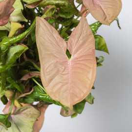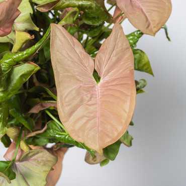Zroślicha 'Red Heart' to piękna i niewymagająca roślina. Jej liście zabarwione są na różowo-czerwony kolor i kształtem przypominają serce. Syngonium lubi miejsca jasne i wilgotne. Może być uprawiana przy podporach, gdyż w miarę wzrostu jej pędy się wydłużają i przewieszają.