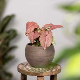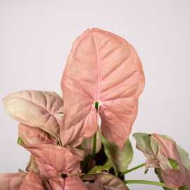 Zroślicha 'Red Heart' to piękna i niewymagająca roślina. Jej liście zabarwione są na różowo-czerwony kolor i kształtem przypominają serce. Syngonium lubi miejsca jasne i wilgotne. Może być uprawiana przy podporach, gdyż w miarę wzrostu jej pędy się wydłużają i przewieszają.