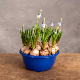 Szafirek 'Esther' – urocza odmiana szafirka o wyjątkowo jasnoniebieskich, delikatnych i pachnących kwiatach. Roślina ta jest łatwa w uprawie, odporna na niskie temperatury i doskonale sprawdza się zarówno w ogrodach, jak i w uprawie pojemnikowej. Preferuje słoneczne lub lekko zacienione stanowiska oraz przepuszczalne, umiarkowanie wilgotne podłoże. Szafirek 'Esther' to doskonały wybór dla miłośników subtelnych wiosennych kwiatów, które pięknie komponują się z innymi roślinami cebulowymi, tworząc efektowne, kolorowe aranżacje.
