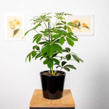 Szeflera drzewkowata 'Nora' ( Schefflera arboricola ), należąca do rodziny Araliaceae, pochodzi z Australii i Nowej Zelandii. W środowisku naturalnym jest czterdziesto metrowym drzewem, gdzie podczas australijskiej wiosny pokrywa się czerwonymi kwiatami. W domu dorasta do 3 - 4 m wysokości i około 1,5 m szerokości. Nazwę zawdzięcza duńskiemu botanikowi ( Jacob Christian Scheffler ).