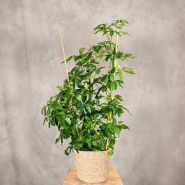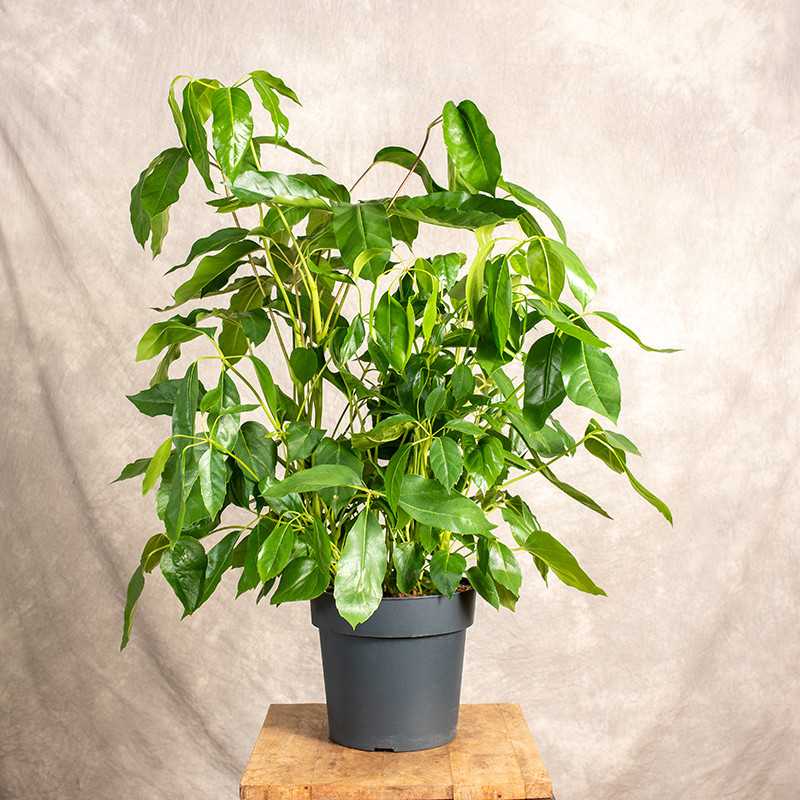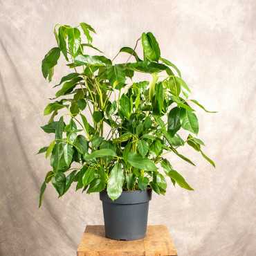 Szeflera actinophylla 'Amate' inaczej szeflera parasolowata, jest chętnie wybieraną rośliną ze względu na wąski pokrój oraz duże, palczaste, błyszczące liście. W uprawie doniczkowej osiąga do 2 metrów wysokości. Lubi światło rozproszone a podlewanie powinno być obfite, jednak nie można dopuścić do zalania korzeni. Dobrym rozwiązaniem będzie zabieg zraszania liści.