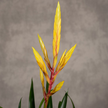 Tillandsia 'Luminosa' to zachwycająca odmiana oplątwy, która łączy subtelną elegancję z egzotycznym urokiem. Jej smukłe, srebrzystozielone liście tworzą efektowną rozetę, z której wyrasta intensywnie żółto-różowy kwiatostan - kontrastowy i niezwykle dekoracyjny.