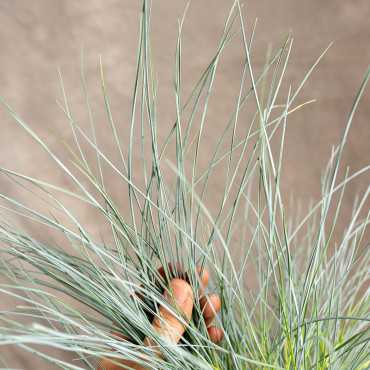 Szaro-niebieska ozdobna trawa, która świetnie sprawdzi się zarówno na balkonie jak i w ogrodzie. Tworzy zwarte, gęste kępy, które osiągają wysokość do 30 cm. Ma bardzo małe wymagania.