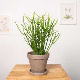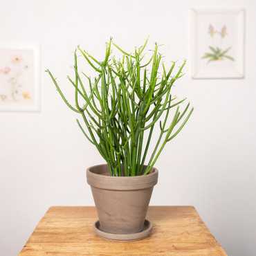Wilczomlecz palczasty ( Euphorbia tirucalli ) To jedna z najbardziej wytrzymałych roślin doniczkowych. Nie straszne jej upały i krótkotrwałe przesuszenie. Nie jest to kaktus lecz sukulent. Roślinę uprawia się w łatwy sposób i jest długowieczna. Idealnie nadaje się na parapet okna południowego.