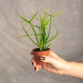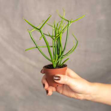 Wilczomlecz palczasty ( Euphorbia tirucalli ) To jedna z najbardziej wytrzymałych roślin doniczkowych. Nie straszne jej upały i krótkotrwałe przesuszenie. Nie jest to kaktus lecz sukulent. Roślinę uprawia się w łatwy sposób i jest długowieczna. Idealnie nadaje się na parapet okna południowego.
