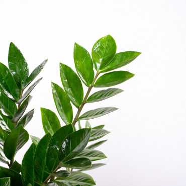 Zamiokulkas zamiolistny to bylina z podziemnym kłączem. Na mięsistych rozdętych u nasady ogonkach wyrastają pierzaste listki. Pojedyncze listki są grube, ciemnozielone, błyszczące. W kłączu i liściach roślina gromadzi zapas wody co pozwala jej przetrwać nawet w suchych rejonach Afryki Wschodniej. Odporna na niedobór światła słonecznego, suche powietrze, nieregularne podlewanie.