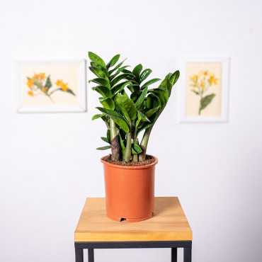 Zamiokulkas 'Zenzi' to kompaktowa odmiana popularnego zamiokulkasa. Ma silnie skrócone i grubsze pędy oraz gęsto ułożone liście. Tworzy zwarty pokrój i jest wyjątkowo łatwy w uprawie. Idealny dla początkujących.