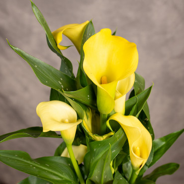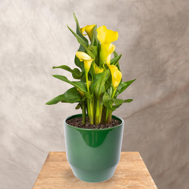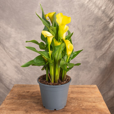 Zantedeschia 'Sunclub' to elegancka odmiana kalli o intensywnie żółtych, kielichowatych kwiatach, które wyrastają na smukłych, sztywnych łodygach. Jej zielone liście często zdobią delikatne, białe cętki, co dodaje roślinie wyjątkowego uroku. Osiąga wysokość od 40 do 60 cm i najlepiej rośnie na stanowiskach słonecznych lub półcienistych.