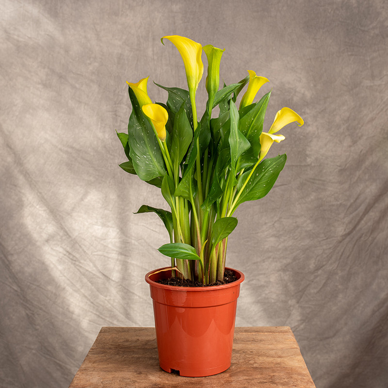 Zantedeschia 'Sunclub' to elegancka odmiana kalli o intensywnie żółtych, kielichowatych kwiatach, które wyrastają na smukłych, sztywnych łodygach. Jej zielone liście często zdobią delikatne, białe cętki, co dodaje roślinie wyjątkowego uroku. Osiąga wysokość od 40 do 60 cm i najlepiej rośnie na stanowiskach słonecznych lub półcienistych.