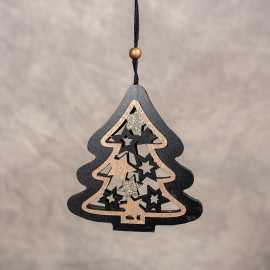 Ozdoba choinkowa w kształcie choinki. Wykonana z drewna.