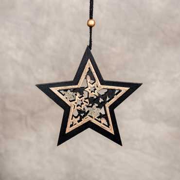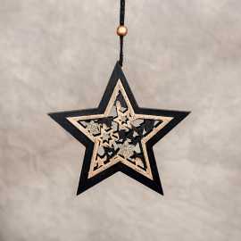 Ozdoba choinkowa w kształcie gwiazdy. Wykonana z drewna.