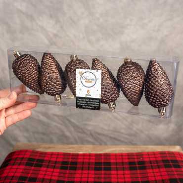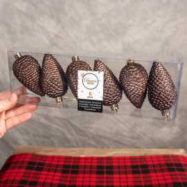 Zestaw zawieszek na choinkę w kształcie szyszki. W zestawie znajduje się 6 sztuki.