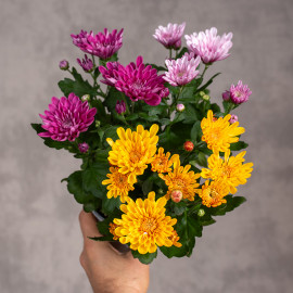 Chryzantema ( Złocień ) to wieloletnia roślina z rodziny Astrowatych. W Japonii jest to kwiat narodowy. Ich pokrój jest wzniesiony i krzaczasty. Znakiem rozpoznawczym tych roślin są bardzo charakterystyczne, pierzasto powcinane liście. W zależności od gatunku, kwiaty chryzantem mogą różnić się zarówno wielkością, jak i kształtem oraz kolorem. Występują kwiatostany kuliste, półkuliste, parasolowate, igiełkowe czy pomponowe. Chryzantema znalazła się również w badaniach Clean Air Study prowadzoną przez NASA, uznaję się ją za roślinę oczyszczającą powietrze.